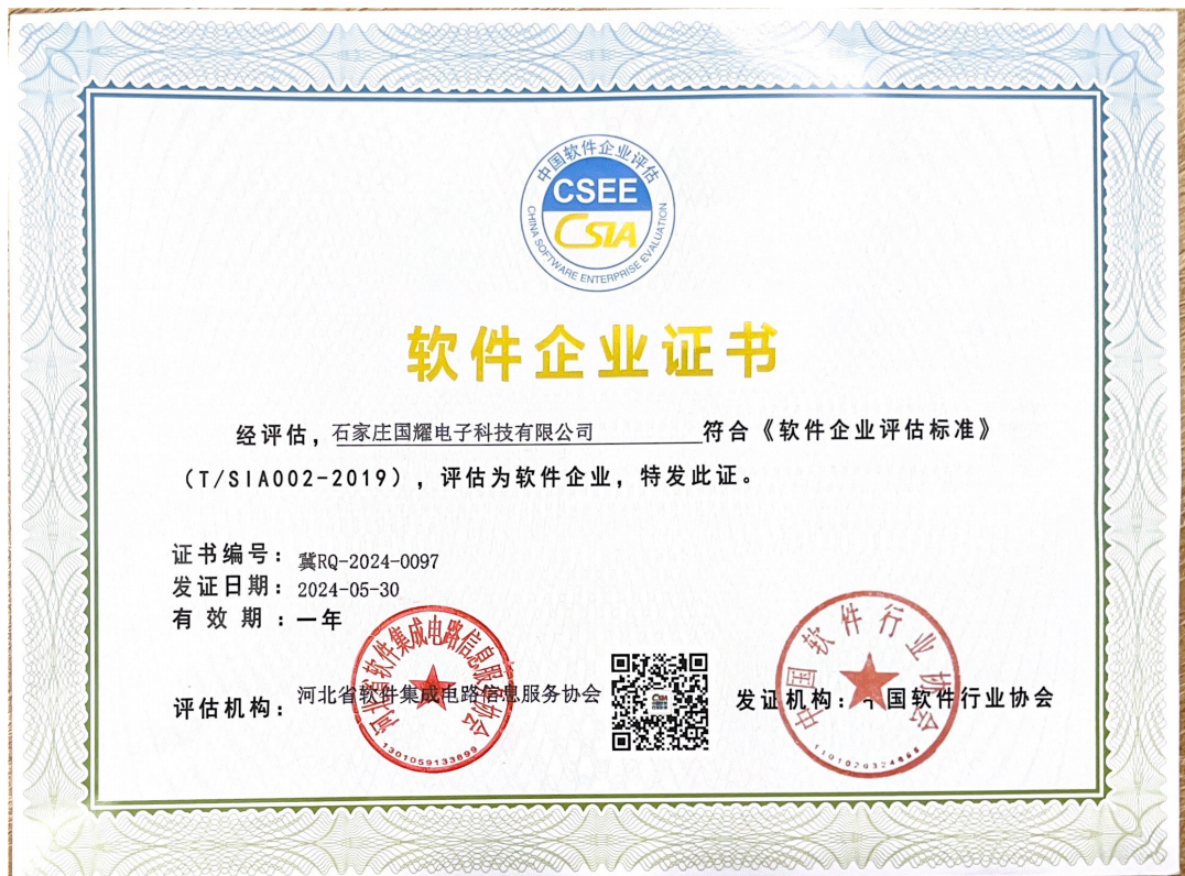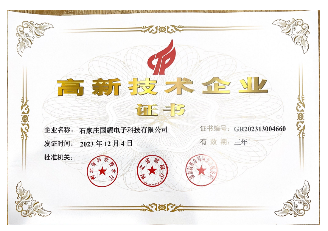 石家莊國耀電子科技有限公司成立于1998年,注冊資本1000萬元,位于石家莊市高新技術產(chǎn)業(yè)開發(fā)區(qū),是國家高新技術企業(yè)和軟件企業(yè)。